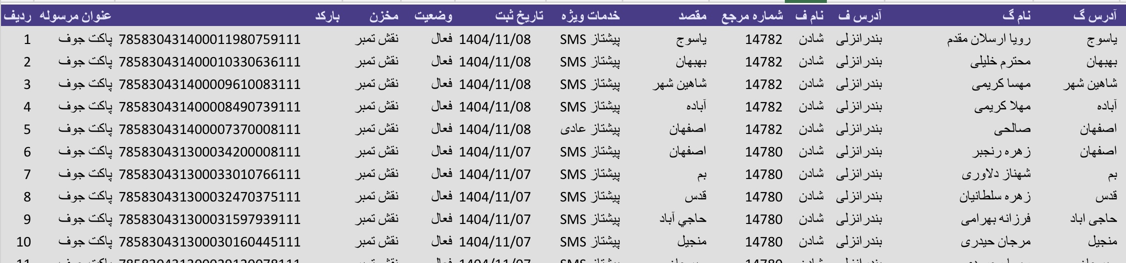 کد مرسوله 21 ابان