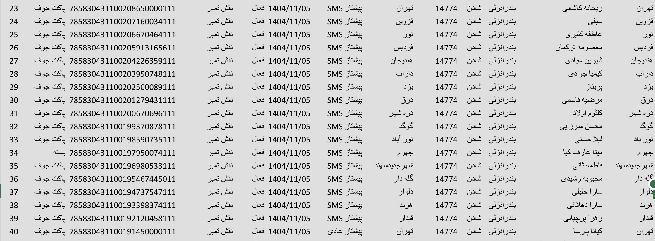 کد مرسوله 22